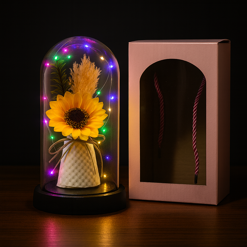 Girasol en Cúpula Lumínica – Decoración Perfecta para Regalar