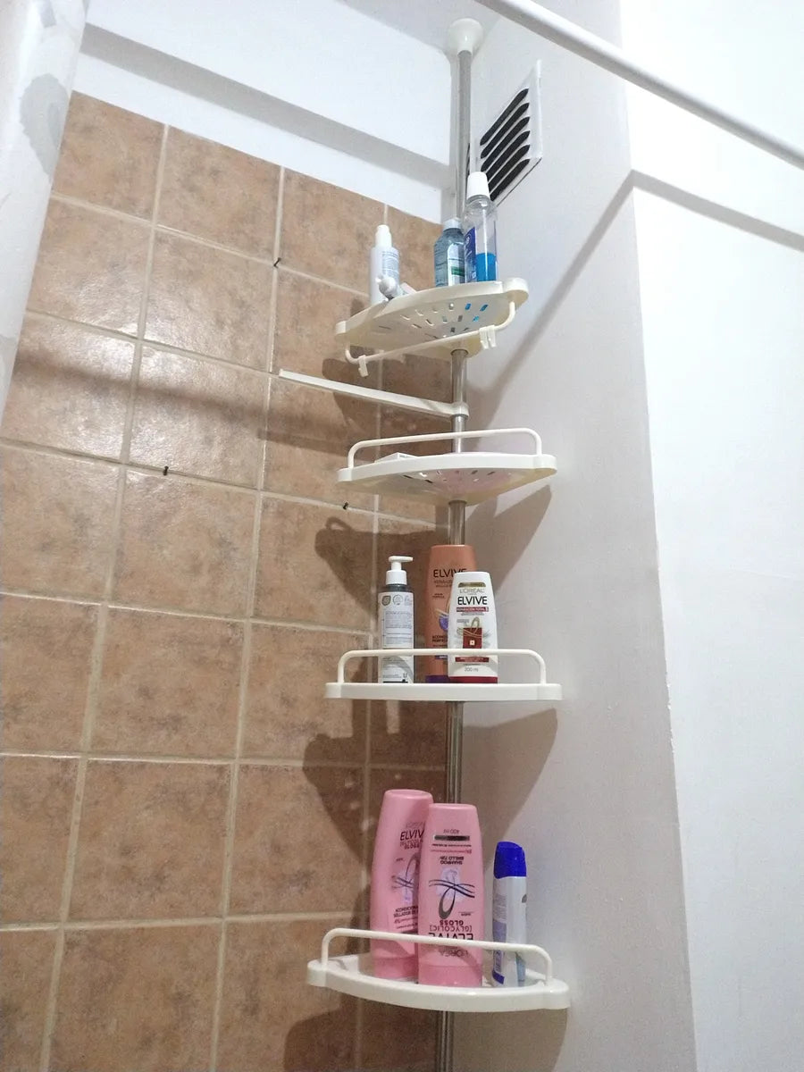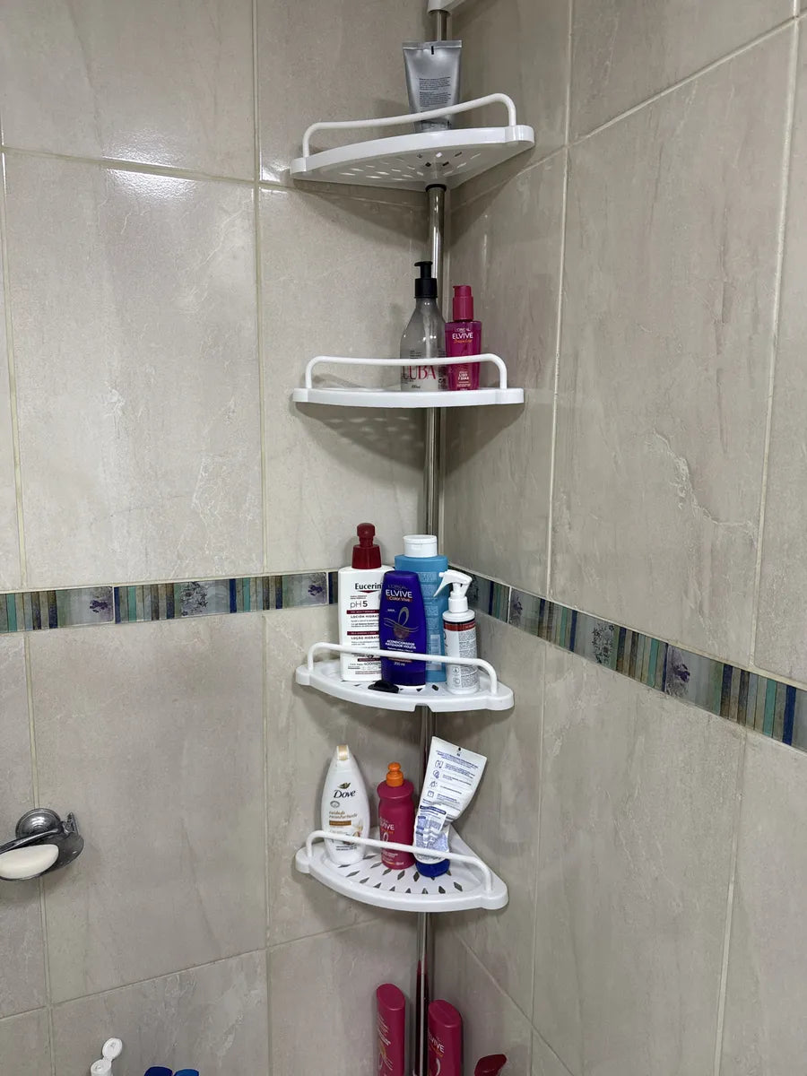 Muy práctico y firme. Las bandejas aguantan varios frascos y se instalan al toque. Ordenó completamente mi ducha sin ocupar espacio extra.